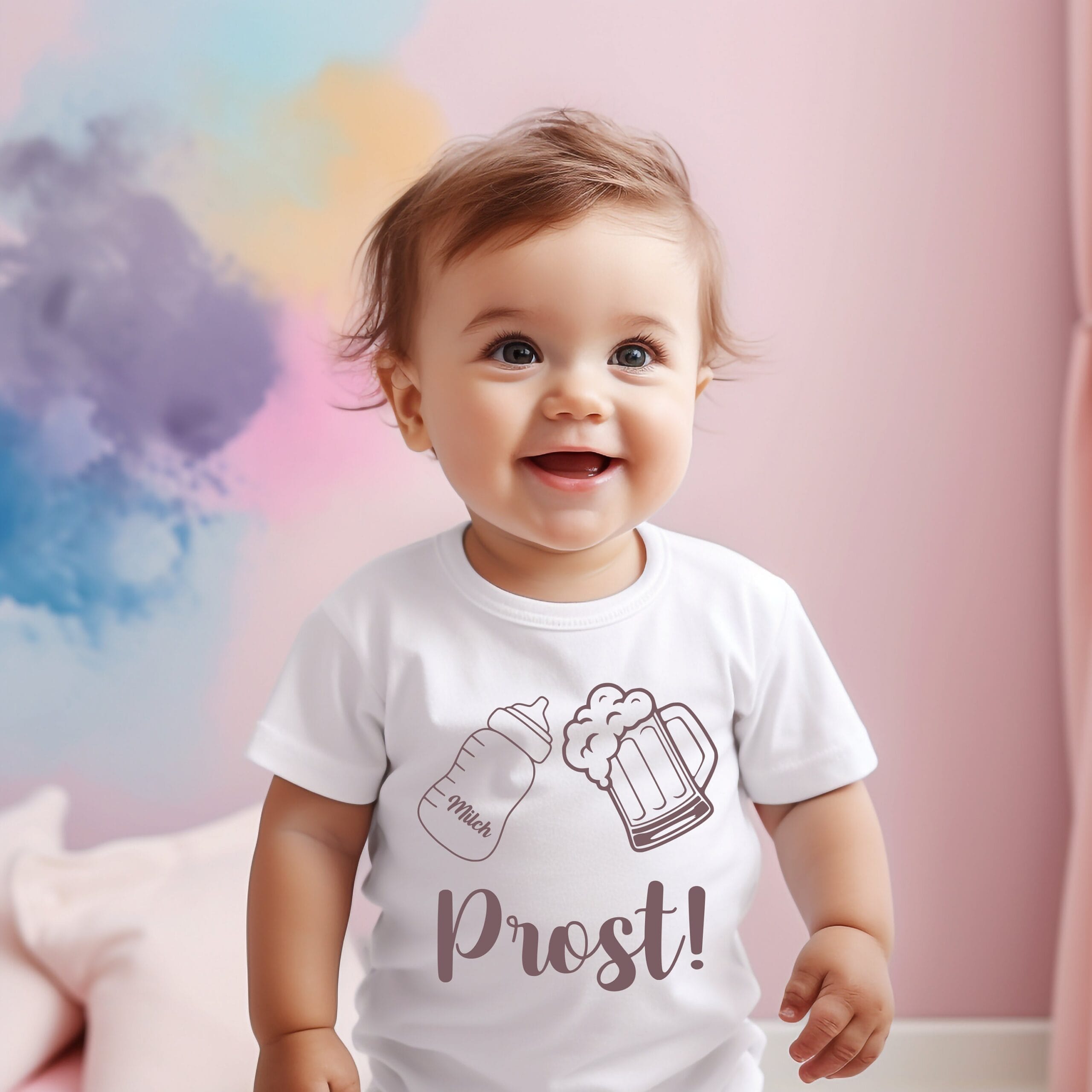 Du bist auf der Suche nach einem persönlichem Geschenk zur Geburt? Wie wäre es mit unserem wunderschönen Baby Body für das eigene Kind oder auch als Geschenk für die Kleinen von Bekannten und Familie. Verschenke diese Lustiger Baby Body zum schönsten Anlass der Welt. Wie bestelle ich meinen Wunschartikel? Du erhältst den Baby Body in der Farbe weiß. Das Design wird wie auf dem Bild mit dem Spruch “ Prost!“ aufgedruckt. Material- und Pflegehinweise: – 100 % Baumwolle – Weiche und elastische Verarbeitung – Druckknopfleiste im Schritt – Rundhalsausschnitt – Oeko Tex Zertifizierung – Bis 40 C auf Links waschbar – Nicht Trocknergeeignet – Bügeln auf Links Maße des Artikels: – 53-60 cm(0-3 Monate) – 60-66 cm(3-6 Monate) – 66-76 cm(6-9 Monate) – 76-86 cm(9-12 Monate) Gerne kannst du uns bei Fragen oder Sonderwünschen eine Nachricht schreiben. Wir helfen dir weiter! Wir wünschen dir jetzt schon ganz viel Freude beim Verschenken! ——————————————————————- Wichtige Hinweise: Durch unterschiedliche Bildschirmeinstellungen kann es zu Farbabweichungen kommen. Dies ist kein Reklamationsgrund. Das auf dem Produktbild abgebildete Zubehör dient zur Dekoration und gehört nicht zum Artikel. Bitte beachte zusätzlich unsere AGBs. Diese findest du weiter unten auf dieser Seite.